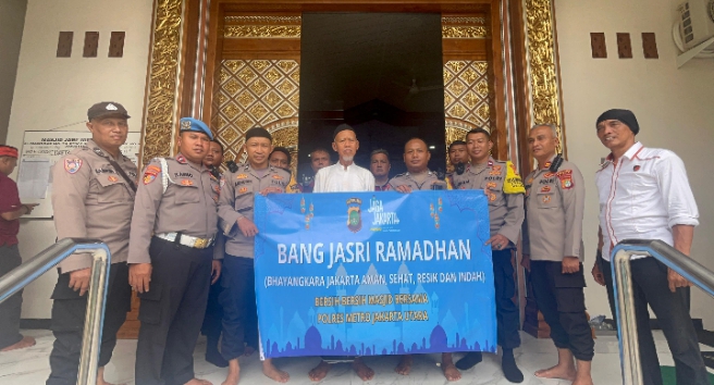 Targetberita.co.id Jakarta Utara, Dalam rangka mendukung kebersihan lingkungan dan menciptakan suasana ibadah yang nyaman menjelang bulan suci Ramadhan, jajaran Polsek Koja menggelar kegiatan Program Bang Jasri (Bhayangkara Jakarta Asri) di Masjid Jami Miftahul Huda, Kelurahan Tugu Utara, Kecamatan Koja, Jakarta Utara, Selasa (3/3/2026).