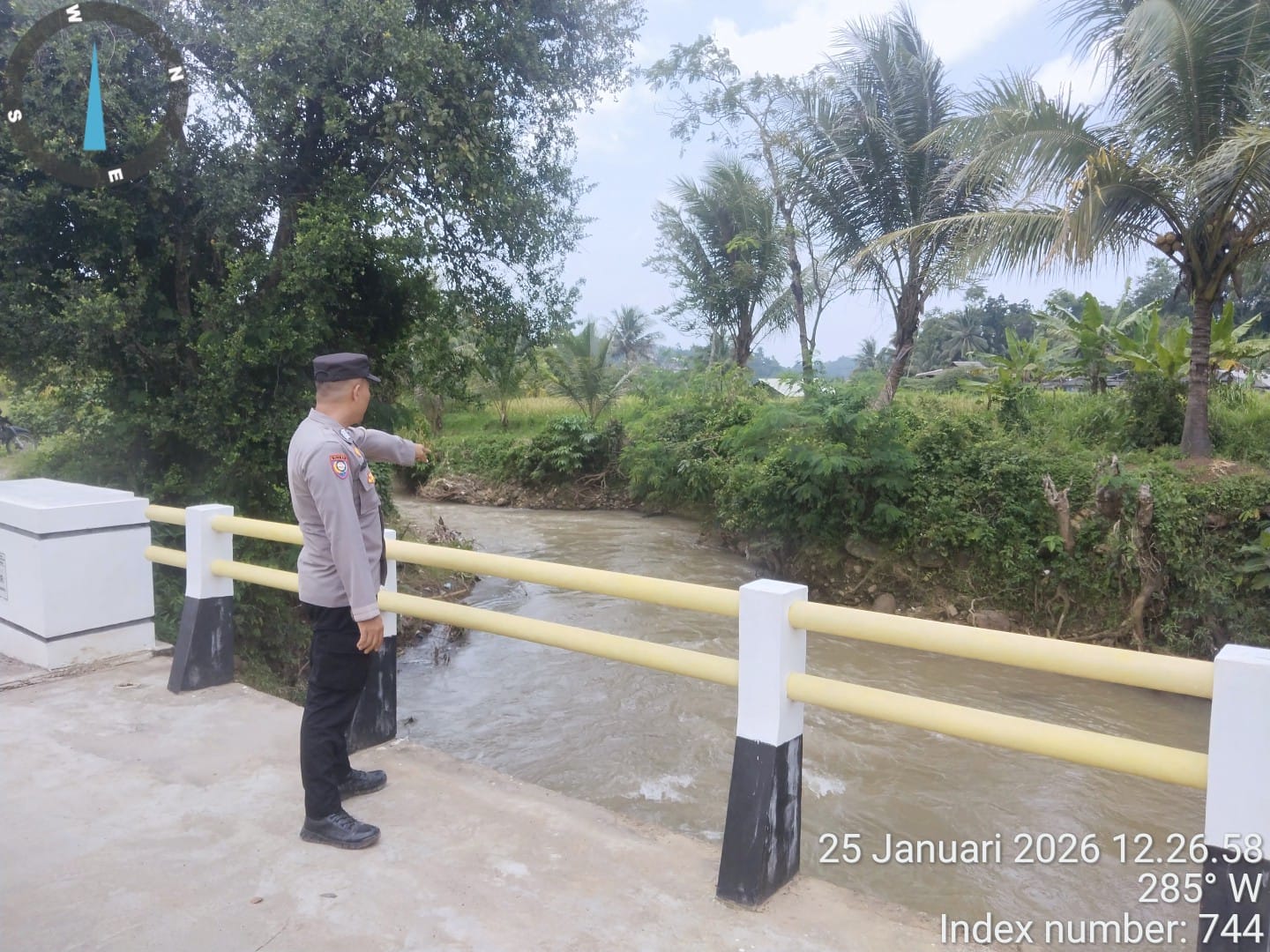 Targetberita.co.id Cilegon – Banten, Sebagai Pengemban Fungsi Harkamtibmas, Bhabinkamtibmas Melaksanakan Patroli Monitoring Pengecekan ketinggian air / debit air sungai dari wilkum Polsek Mancak, yang menuju kota Cilegon, Anyer dan sekitar, guna antisipasi bencana cuaca ekstrim, Minggu (25/1/2026).