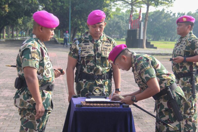 Targetberita.co.id Jawa Timur, Komandan Resimen Kavaleri Marinir (Danmenkav 2 Mar) Kolonel Mar Dr. Iwan Permana, S.H., M.Tr.Opsla., serah terima Prajurit Tamtama Remaja Angkatan XLV Gel 1 TA 2025 di Lapangan Apel Kesatrian Marinir Moekijat Mako Pasmar 2, Gedangan Sidoarjo. Senin (06/04/2026).
