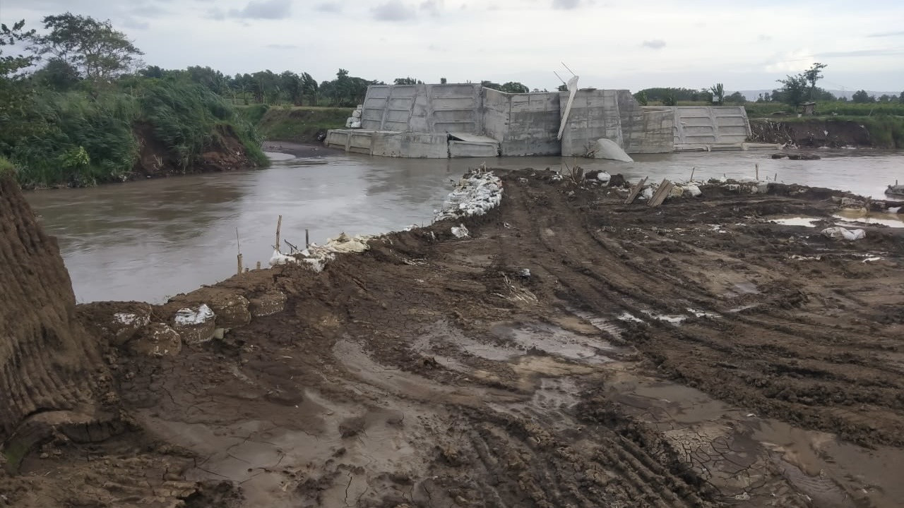 “Yang ambrol itu Kisdam, karena tergerus oleh kekuatan air, terus tangkis sebelah barat juga terkikis,” kata salah satu warga, yang enggan disebutkan namanya, Senin (12/1/2026).