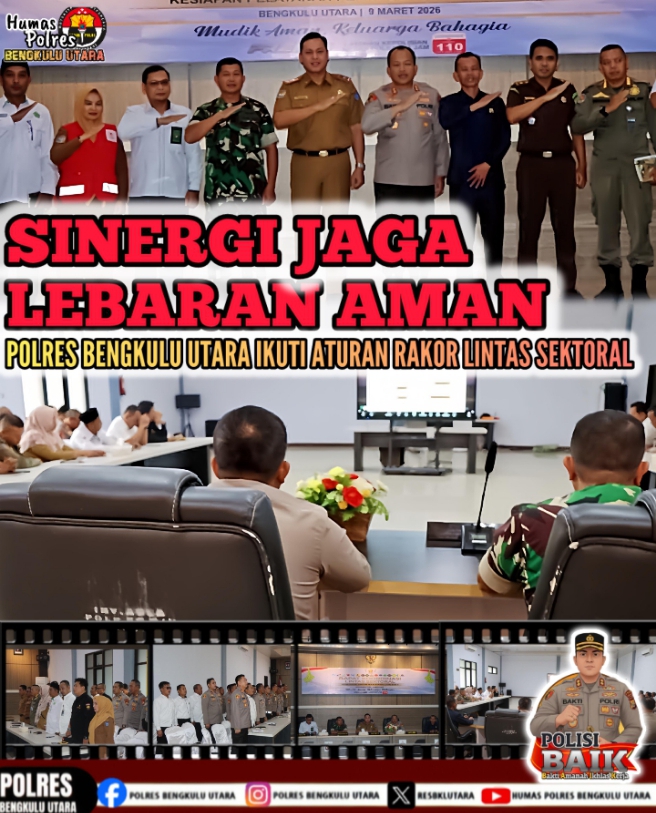 Sementara itu, Kapolres Bengkulu Utara AKBP Bakti Kautsar Ali, S.Sos., S.I.K., M.H. menyampaikan bahwa Polres Bengkulu Utara bersama instansi terkait siap bersinergi dalam mendukung pelaksanaan Operasi Ketupat Nala 2026 guna menciptakan situasi yang aman, tertib dan kondusif selama rangkaian perayaan Idul Fitri di wilayah Kabupaten Bengkulu Utara.