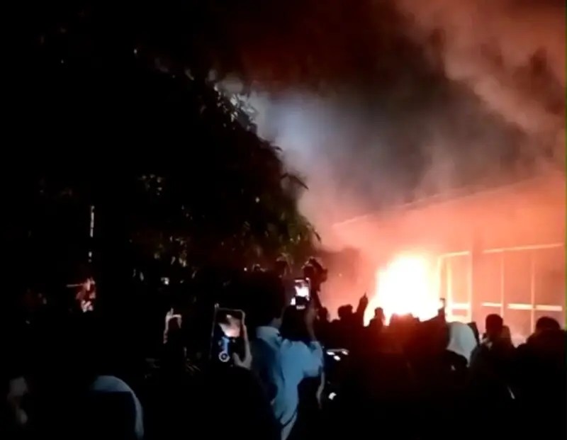 Aksi pun berujung ricuh, Sejumlah fasilitas di lokasi tersebut dibakar massa yang geram atas penangkapan para nelayan.