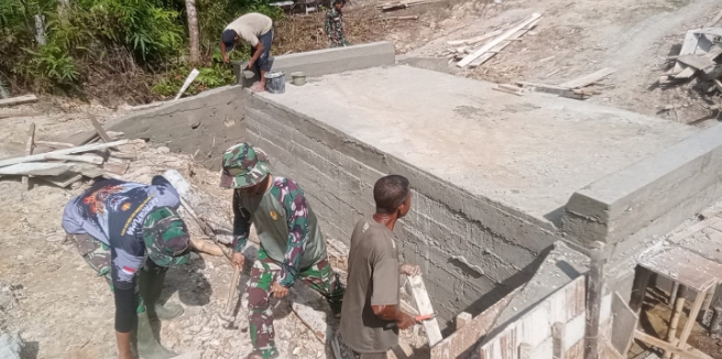 Untuk pengerjaan hari ini lanjut Danramil, TNI dan warga melaksanakan pembukaan mal cor dan perataan tanah timbun atas box culver.