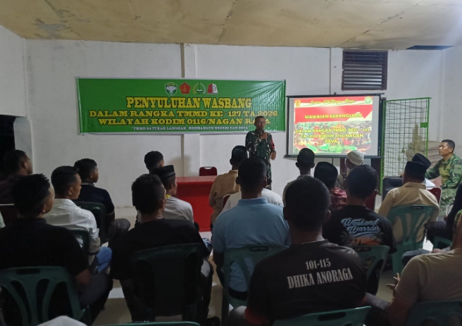 Targetberita.co.id Kab. Nagan Raya – Aceh, Di sela-sela pelaksanaan pembangunan infrastruktur desa dalam program TNI Manunggal Membangun Desa (TMMD) ke-127, Satgas TMMD Kodim 0116/Nagan Raya juga melaksanakan kegiatan nonfisik berupa penyuluhan wawasan kebangsaan.