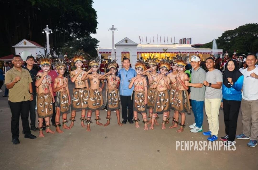 Bahkan sejumlah wisatawan mancanegara yang berada di kawasan istana ikut bergabung, merasakan langsung pesona budaya Indonesia di halaman Istana Merdeka.