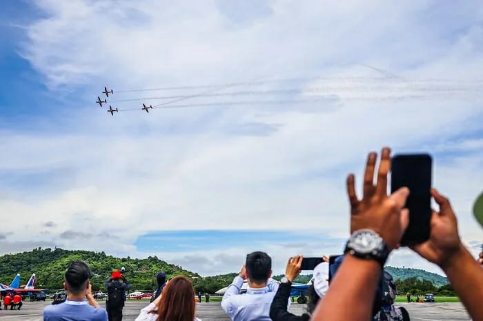 Penonton LIMA 2025 Malaysia yang menyaksikan manuver udara JAT pada acara pembukaan.