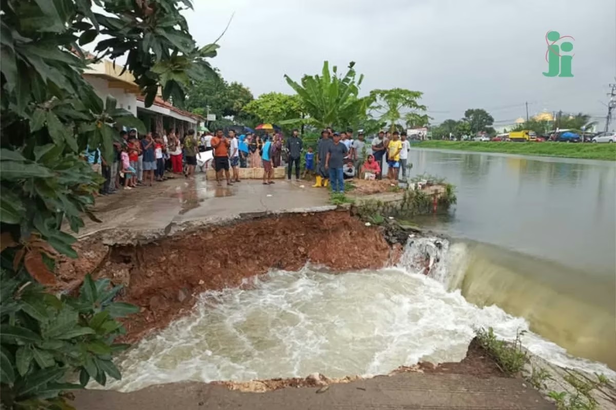 “Karena sudah tua, akhirnya jebol. Awalnya memang sudah terlihat ada retakan,” katanya.