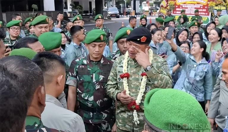 Mereka terus mengiringi Wahyu hingga jebolan Akmil 1998 ini naik ke mobil dinasnya.