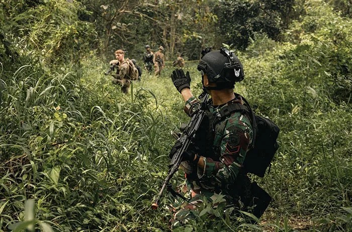 Latihan tersebut menuntut ketangguhan fisik, kecerdikan, serta kerja sama lintas negara dalam menghadapi kondisi ekstrem di medan tropis.