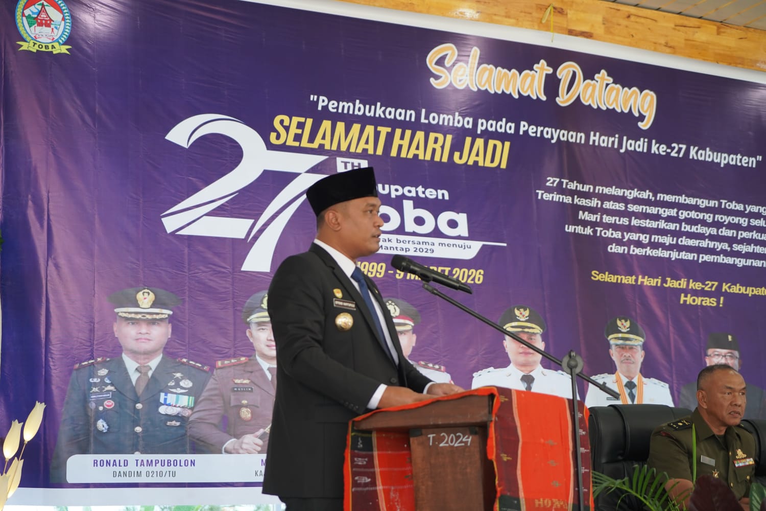 “Bagaimana kita memaknai perjalanan panjang Kabupaten Toba hingga usia 27 tahun dengan hal-hal yang positif, berbudaya, dan dapat membangkitkan persatuan dan kesatuan segenap unsur masyarakat, dengan semboyan “Tampakna do Rantosna Rim ni Tahi do Gogona,” kata Bupati dalam sambutannya.