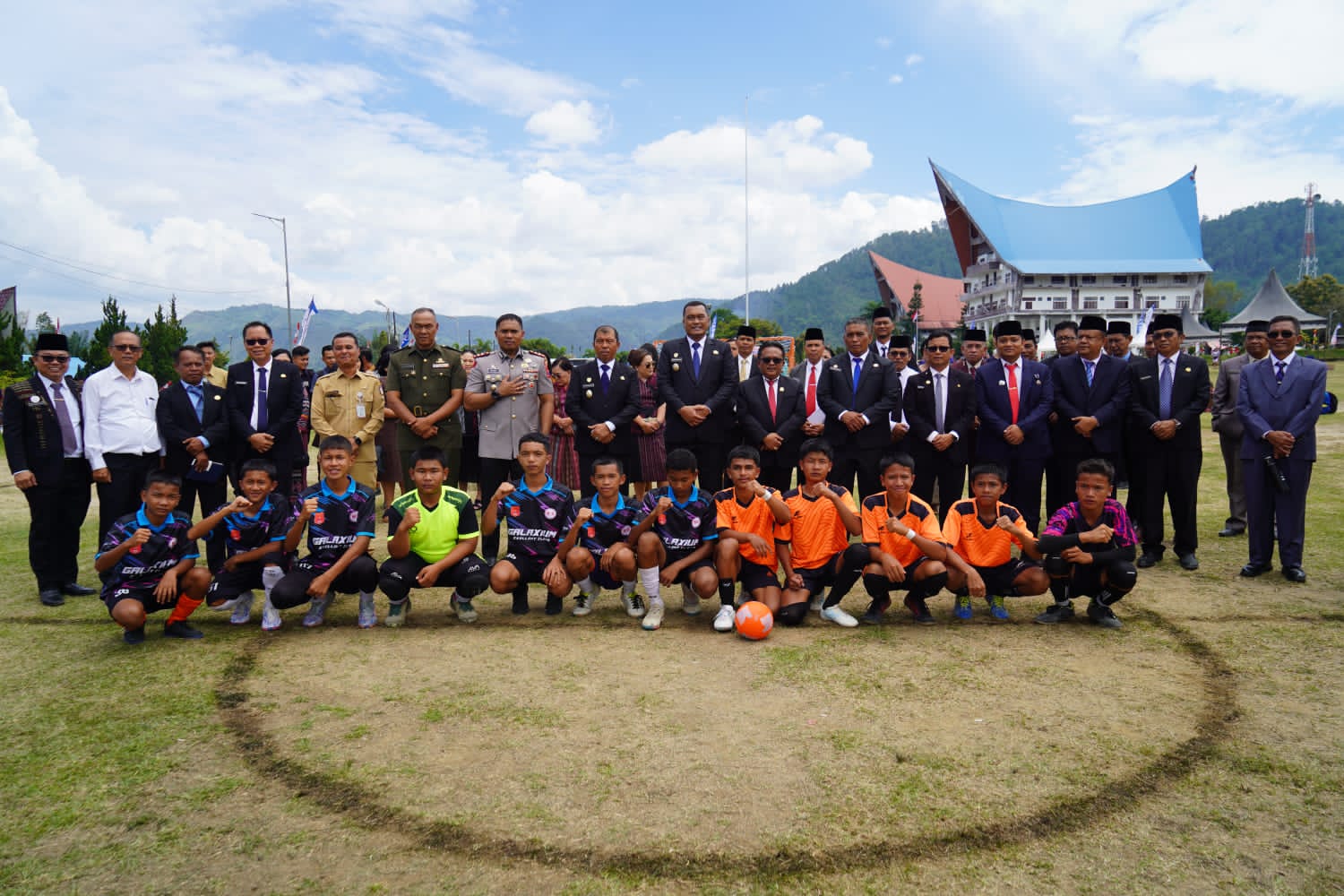 Bupati Toba Effendi Sintong P. Napitupulu didampingi Wakil Bupati Toba Audi Murphy O. Sitorus dan jajaran Forkopimda membuka pertandingan futsal antar pelajar pada perayaan HUT ke-27 Kabupaten Toba di pendopo rumah dinas Bupati Toba pada Senin (9/3/2026) siang.