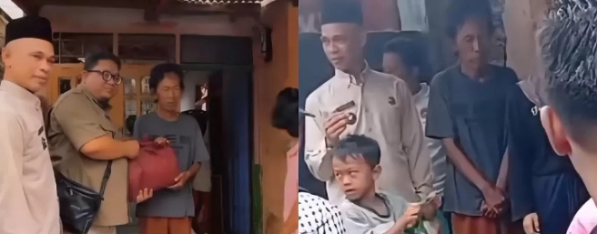 Dalam unggahan Instagram @pembasmii.kehaluan, pada Rabu (28/1/2026), Sudrajat terlihat menerima berbagai bantuan dari pihak perwakilan Bupati Bogor tersebut.