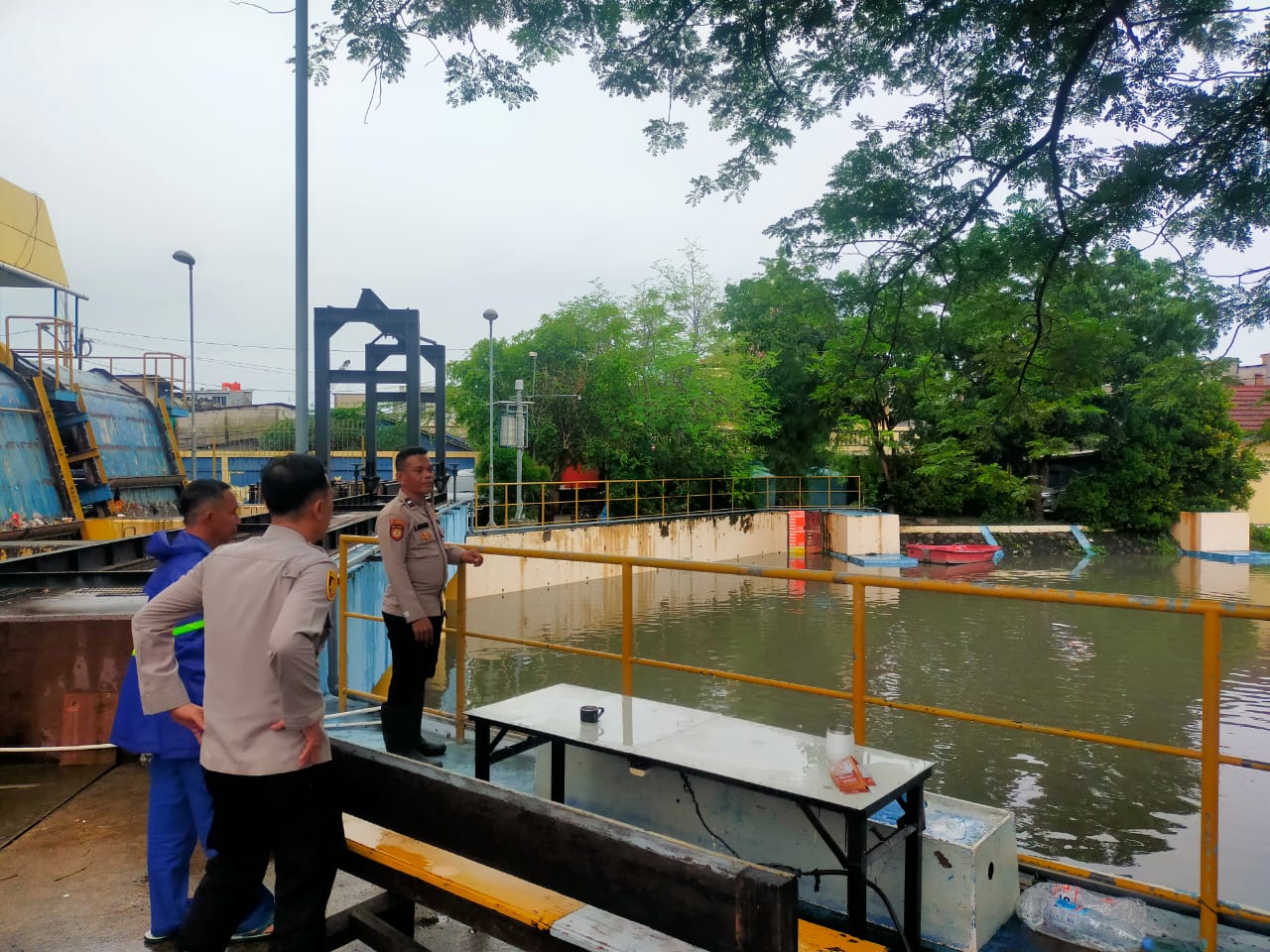 Dalam kegiatan tersebut, Wakapolsek melakukan pengecekan langsung terhadap operasional rumah pompa sekaligus berkoordinasi dengan petugas pompa, Bapak Hengki, untuk memastikan seluruh pompa berfungsi secara optimal.