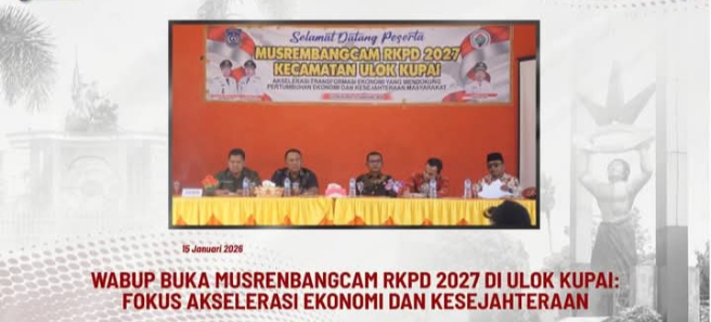 Targetberita.co.id Bengkulu Utara – Bengkulu, Wakil Bupati Bengkulu Utara, H. Sumarno, S.Pd., secara resmi membuka Musyawarah Perencanaan Pembangunan Kecamatan (Musrenbangcam) dalam rangka penyusunan Rencana Kerja Pemerintah Daerah (RKPD) Tahun 2027 di Kecamatan Ulok Kupai, Kamis (15/01/2026).
