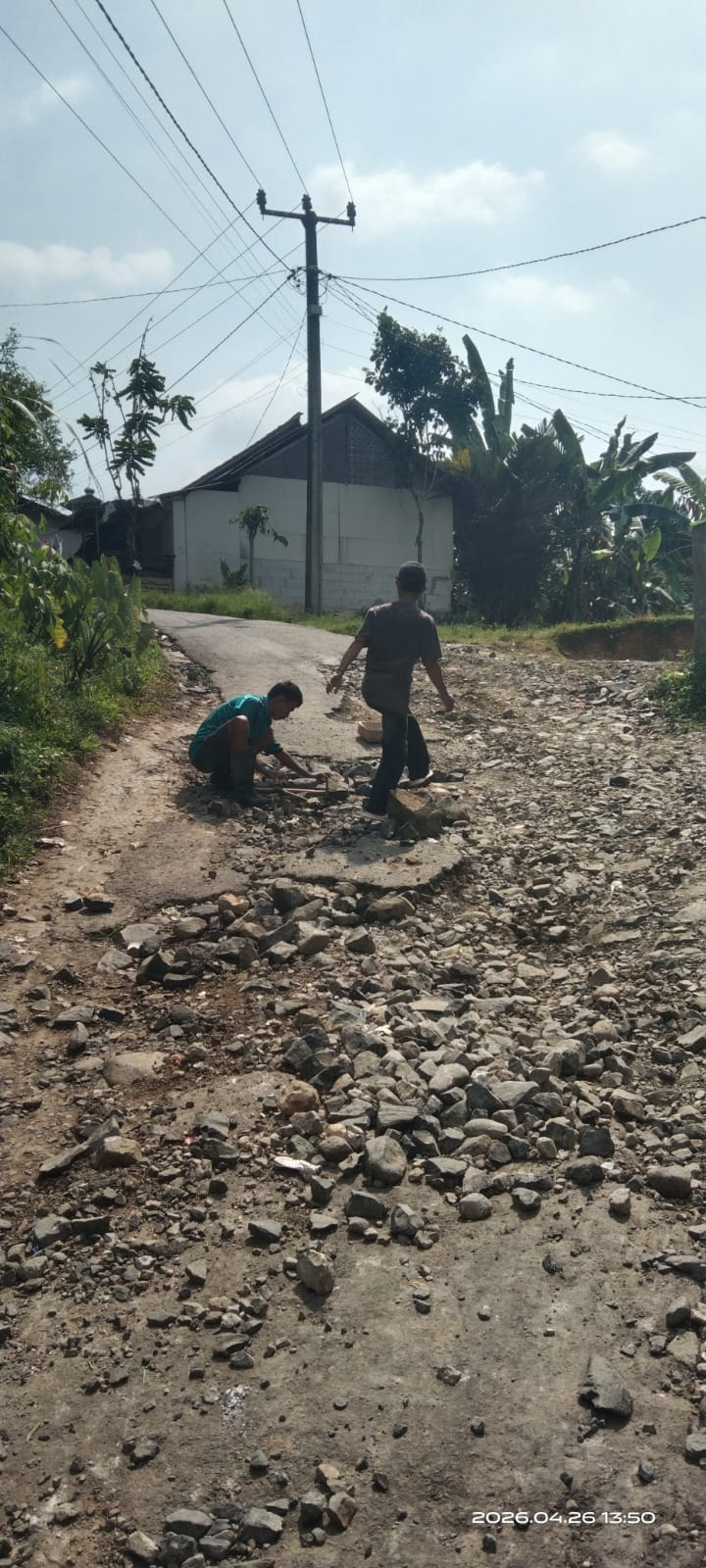 ‎Didorong oleh keprihatinan atas kondisi infrastruktur yang kian memprihatinkan, warga setempat menggelar aksi gotong royong untuk memperbaiki jalan rusak secara swadaya pada Minggu (26/4/2026).