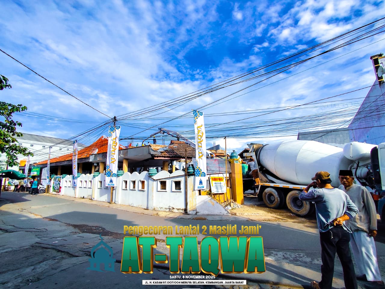 Menjelang datangnya Bulan Suci Ramadhan 1447 Hijriah, warga dari sejumlah rukun tetangga (RT) di sekitar Jalan H. Kasam dan Jalan H. Juhri bergotong royong membersihkan Masjid Jami At-Taqwa yang saat ini masih dalam proses pembangunan.