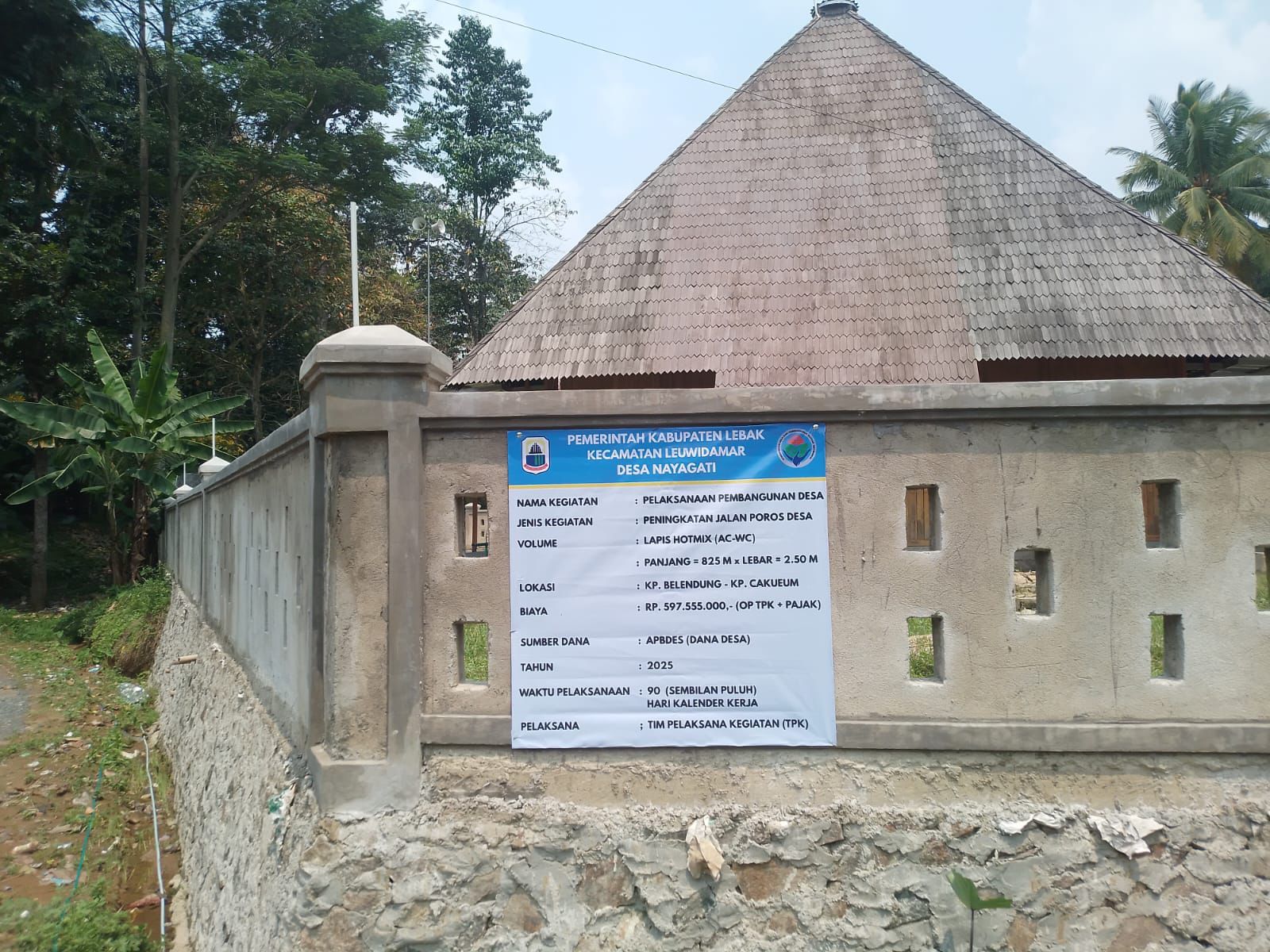 Pekerjaan peningkatan jalan poros desa ini dilaksanakan dengan panjang 825 meter dan lebar 2,5 meter, menggunakan lapisan hotmix (AC-WC). Proyek tersebut bersumber dari Dana Desa (APBDes) tahun 2025, dengan anggaran sebesar Rp. 597.555.000, dikerjakan oleh Tim Pelaksana Kegiatan (TPK) Desa Nayagati.